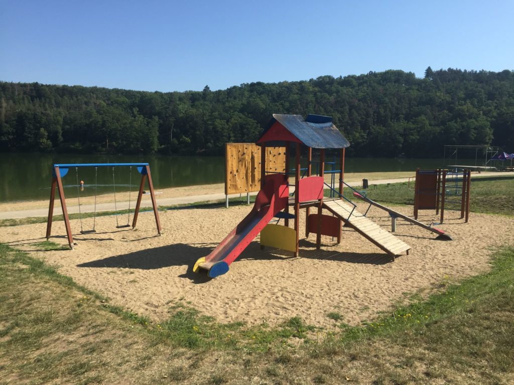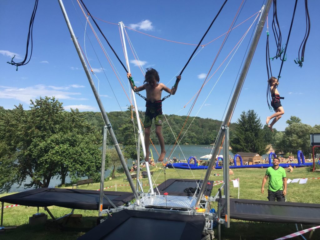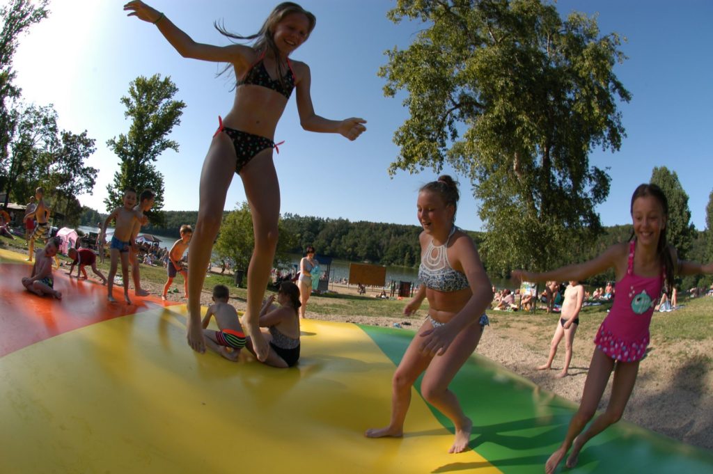 hřiště, obří nafukovací trampolína, vodní skluzavka