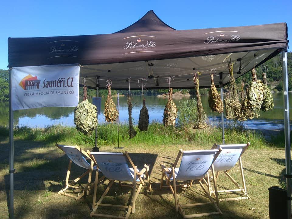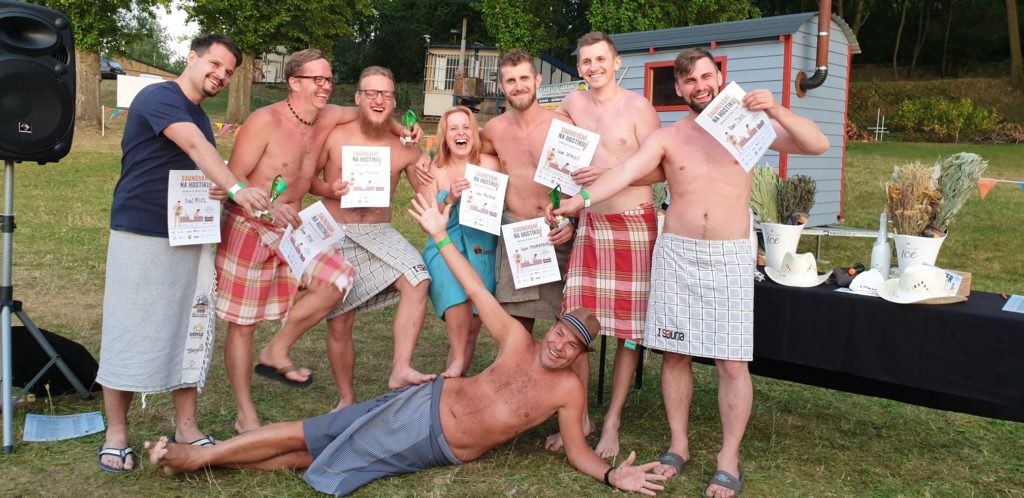 Akce s názvem Saunování na Hostíku nabízela skvělý nejen saunový program pod širým nebem na travnaté louce přímo u písečné pláže, inspirovaný hlavně běloruskými či lotyšskými metličkovými procedurami. Nejdříve bylo potřeba postavit a zprovoznit sauny a připravit metličky, bylinky, peelingy, medy…ale také zázemí pro odpočinek nebo pro porotce. Během krásného letního dne pak proběhlo 7 soutěžních saunových ceremoniálů ve speciálním saunovém stanu a řada saunových ceremoniálů pro veřejnost v krásných mobilních saunách, doplněné o peelingové procedury. Saunový program doladilo několik skvělých čajových rituálů s odborníkem na čajové obřady Karlem Veverkou (Cesta mnicha) a s degustacemi a povídáním o čaji a čajových zvycích v zajímavých čajových destinacích, také několik ukázek vykuřovacích ceremoniálů s Kateřinou Polívkovou (Dobré vůně), očistných kouřových rituálů, při kterých se pálí byliny a vonné přírodní materiály pro očistu těla, duše i mysli a navození hluboké relaxace nebo také ukázky muzikoterapie s Kačkou Šmídovou a Ivou Neubauerovou – použití různých nástrojů které se uplatňují při relaxačních saunových a wellness rituálech. Večerní oheň byl pak krásnou tečkou za skvělým dnem.